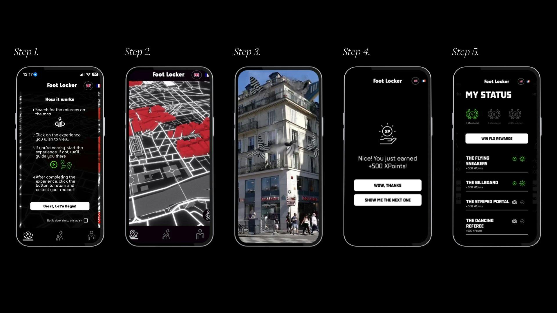Our mission was to transform Foot Locker’s Paris flagship into more than just a storefront, by creating an immersive AR experience that sparked curiosity, invited interaction, and turned a physical space into a living expression of the brand. We set out to reimagine how a brand can exist in the urban landscape, connecting with people in ways that are bold, memorable, and truly of the moment.