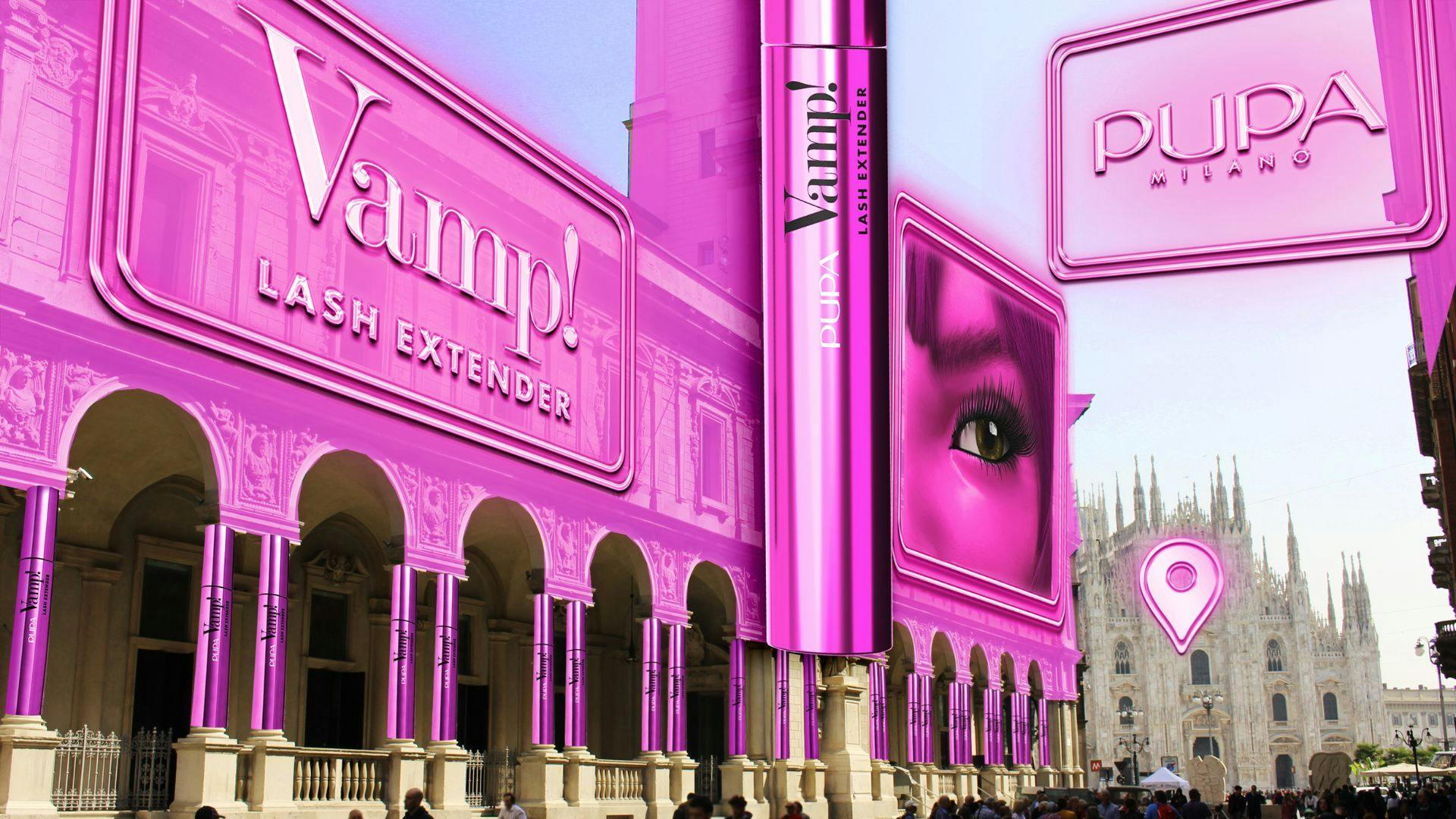 An AR pop-up store in Piazza Duomo blends digital and physical shopping, featuring the Vamp! Lash Extender Mascara.